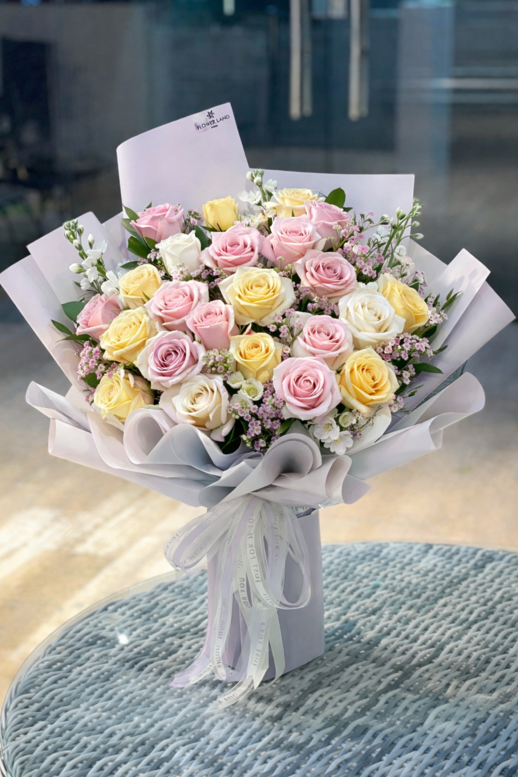 Preciosas rosas cuidadosamente seleccionadas y tratadas. El regalo perfecto para relaciones duraderas. Son un símbolo de amor eterno, familia eterna y amistad infinita. El amor verdadero es especialmente adecuado para ti. Su colorido diseño especial es ideal para fiestas y decoraciones de interior.